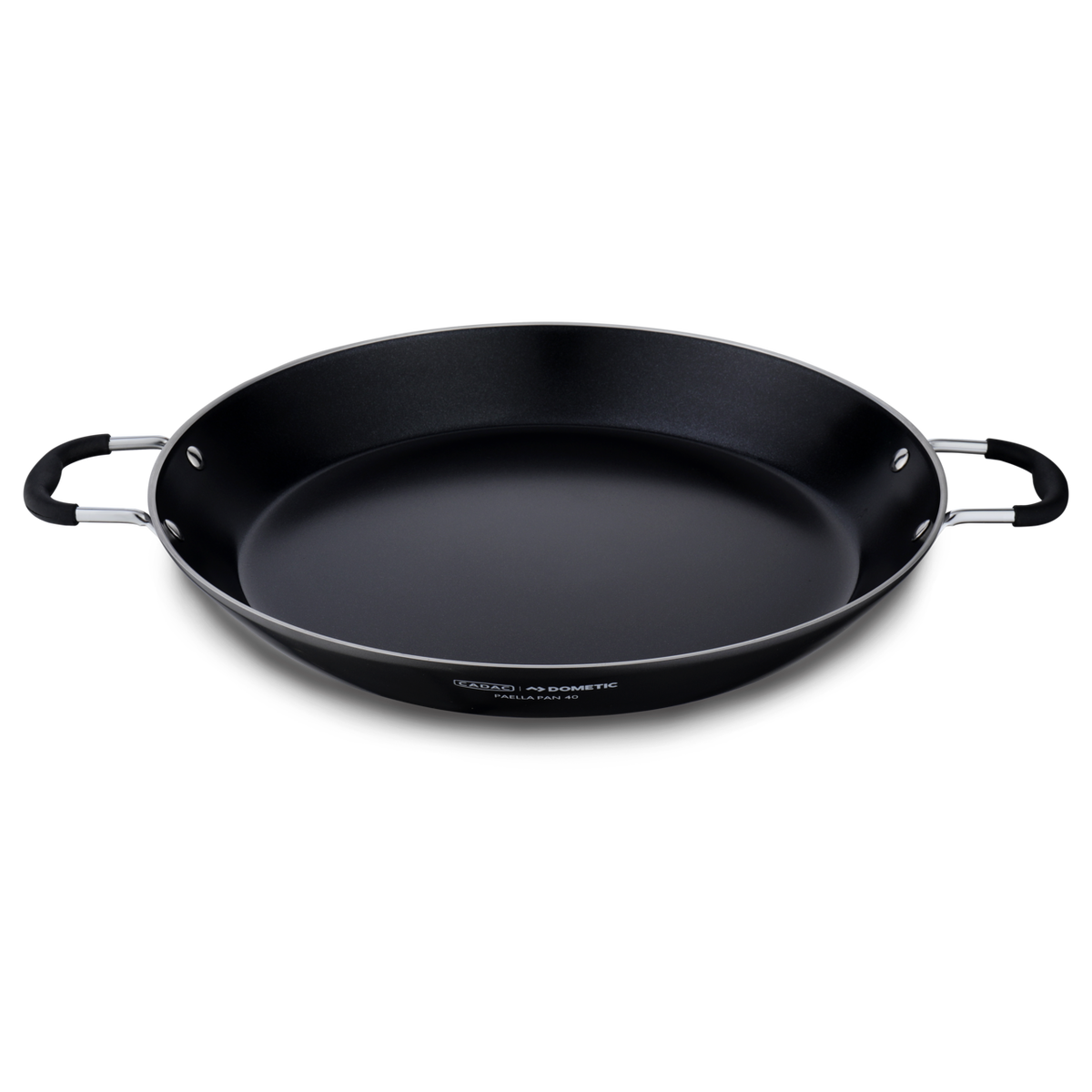 Deze lichte aluminium pan met dikke bodem is voorzien van GreenGrill keramische coating en is daarnaast makkelijk te reinigen. Roestvrijstalen handgrepen zorgen dat je de pan makkelijk van het vuur kan nemen. De grote pan is ideaal voor het bereiden van risotto's, paella's, pastagerechten, ontbijten en andere maaltijden voor een groot aantal mensen. Voor gebruik op de CADAC Citi Chef 40 & Grillo Chef 40 of elken andere gas- of elektrische kookplaat. Levering inclusief praktische opbergtas.