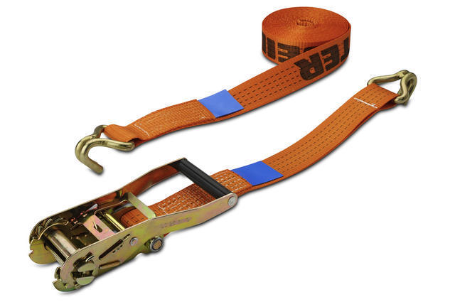Tweedelige 50 mm spanband die is samengesteld uit hoogwaardig geweven polyester. Heeft een bereik van 8 meter en heeft een berkkracht van 300 daN.