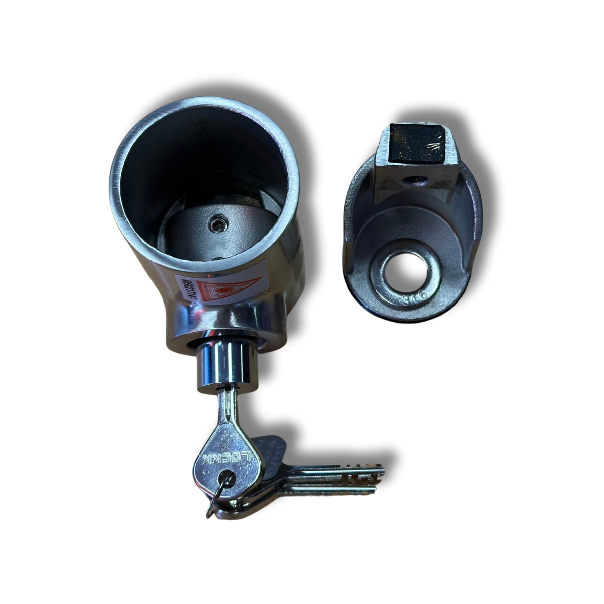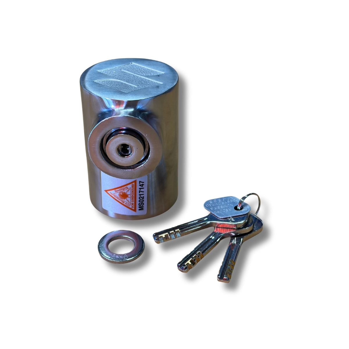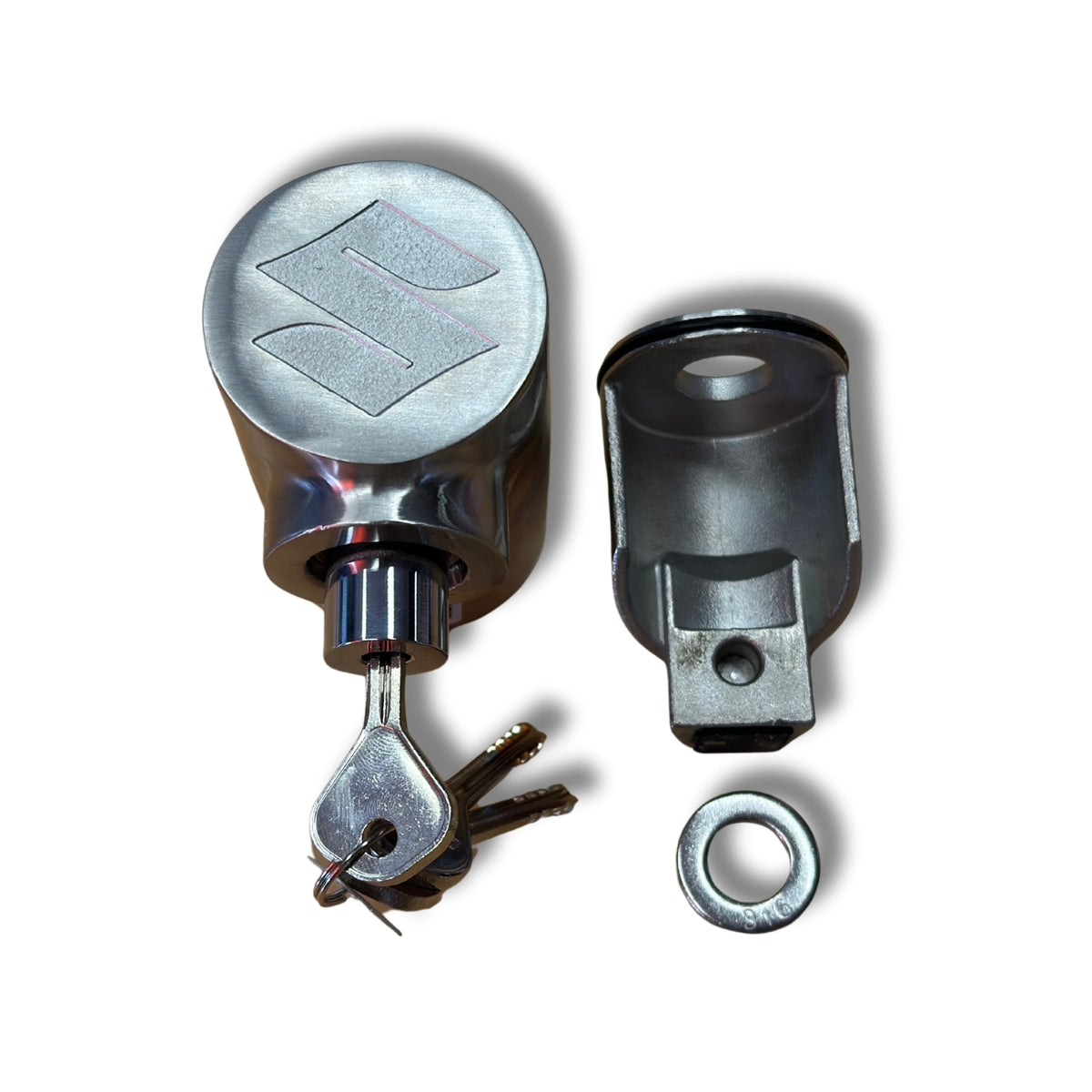 Het slot is vervaardigd uit corrosiebestendig RVS 316 en biedt langdurige bescherming, zelfs in zoute omgevingen. Met een maximale boutdiameter van 14 mm en een compacte lengte van 76 mm past het slot naadloos op de meeste buitenboordmotoren van Suzuki. Bij het openen schuift de cilinder iets naar buiten, waardoor je altijd duidelijk kunt zien of het slot daadwerkelijk ontgrendeld is. Dit verhoogt de gebruiksvriendelijkheid én veiligheid.