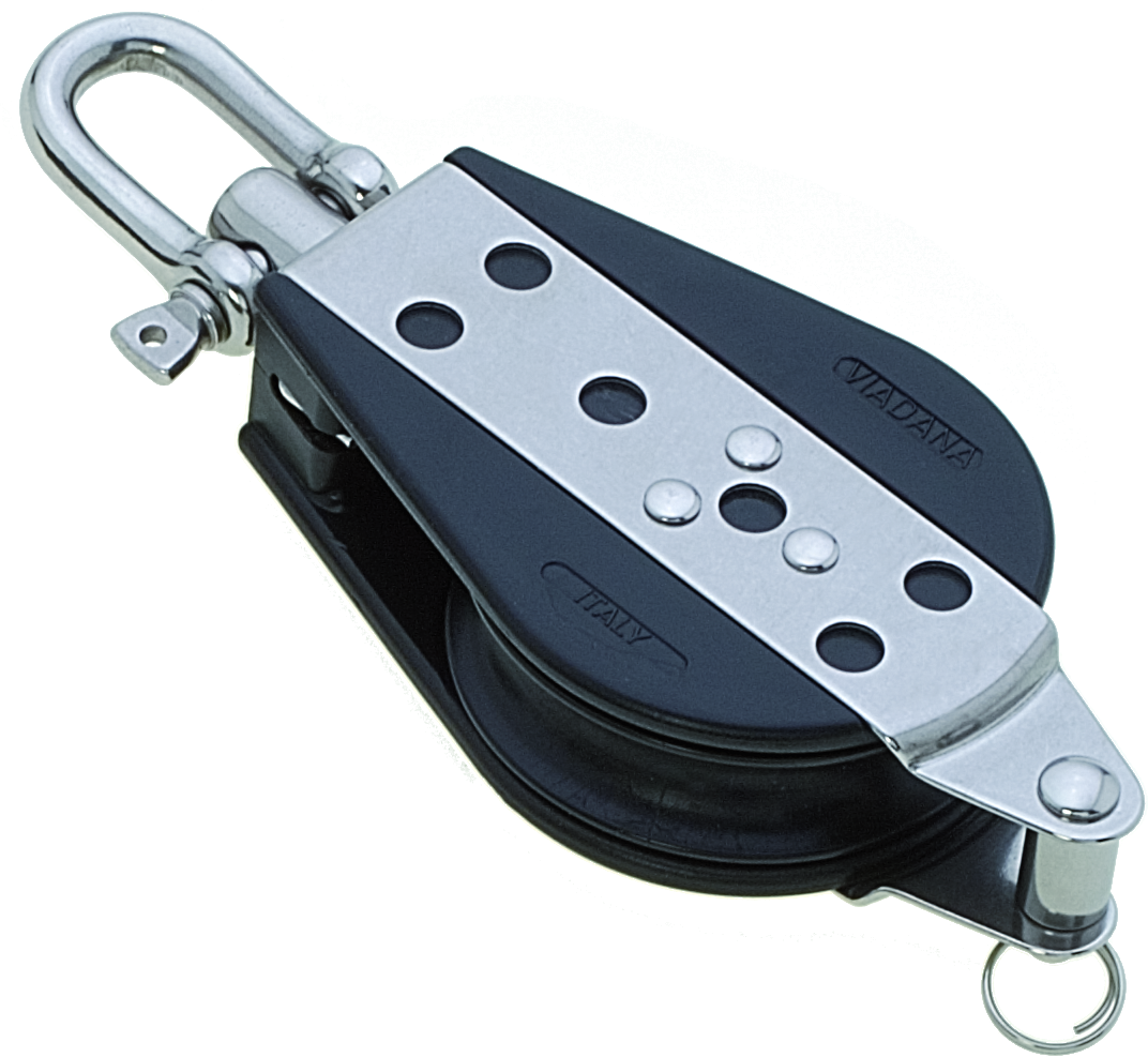 Viadana 1-schijfs blok 14 mm met hondsvot. Geschikt voor lijnen tot 14 mm en belastbaar tot 2300 daN.
