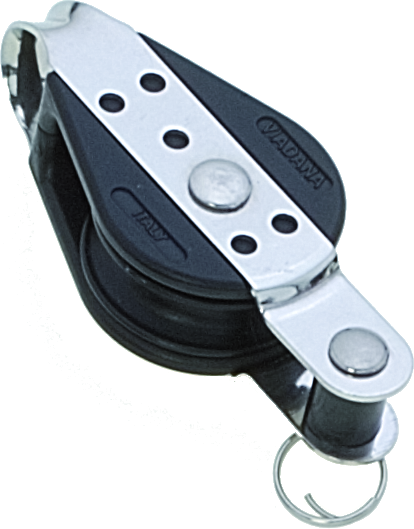 Viadana 1-schijfs blok 8 mm met hondsvot. Geschikt voor lijnen tot 8 mm en belastbaar tot 750 daN.
