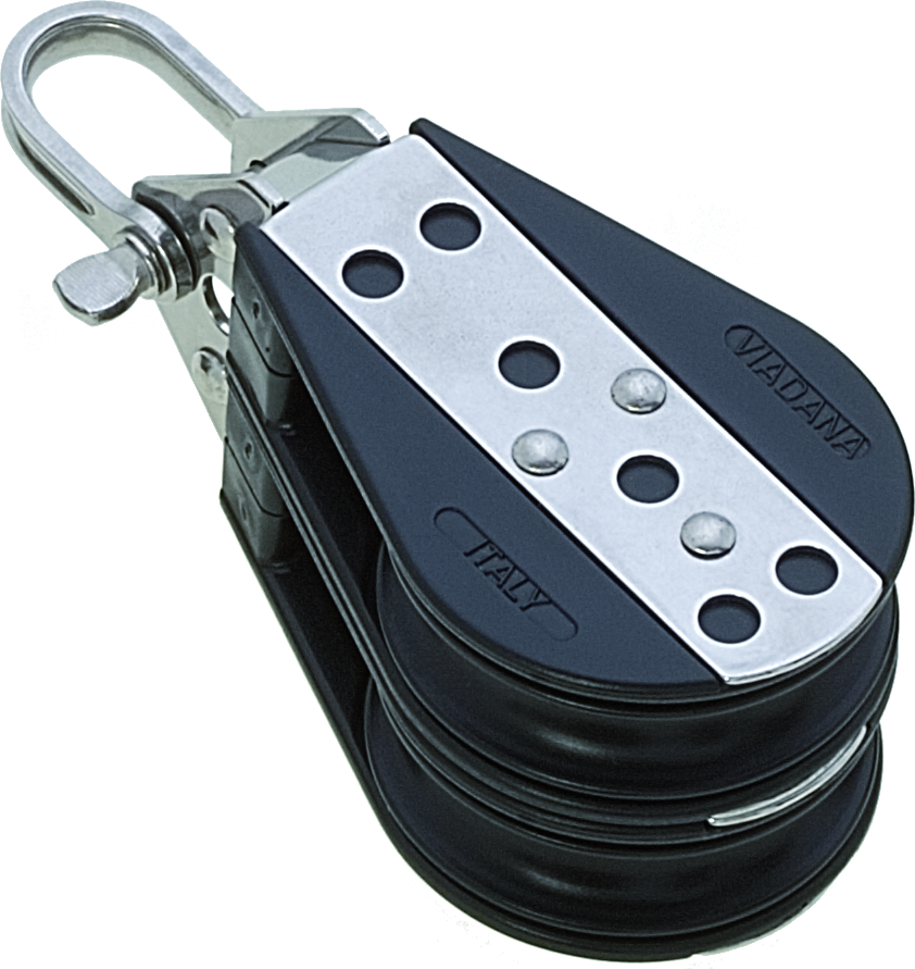 Viadana 2-schijfs blok 12 mm. Geschikt voor lijnen tot 12 mm en belastbaar tot 1000 daN.