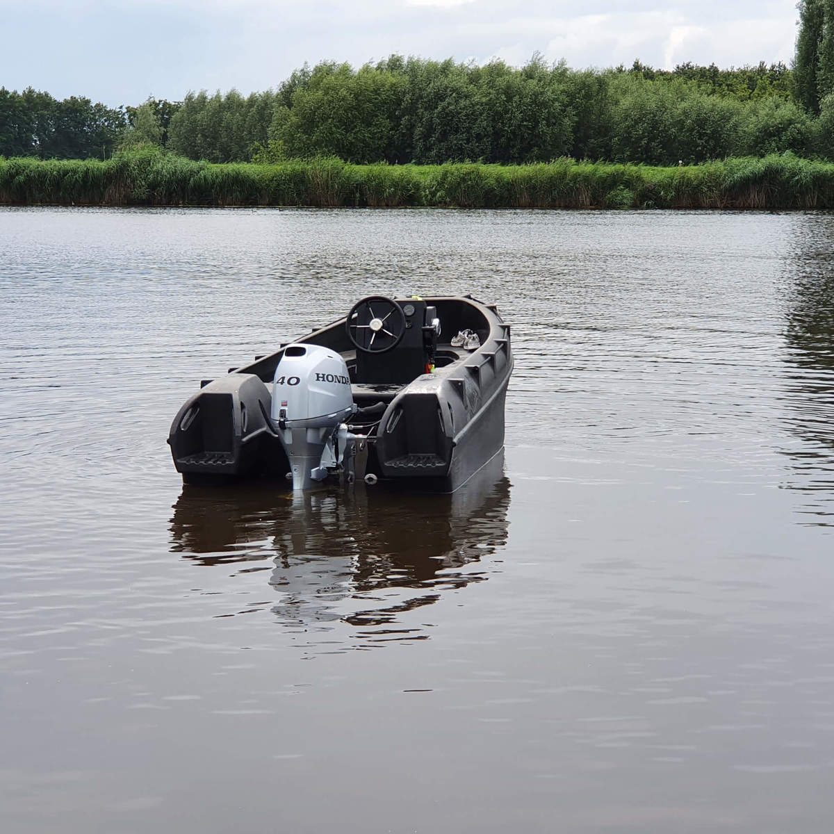De Whaly 400 is een zelflozende, dubbelwandige, ontzettend robuuste open boot vervaardigd uit hoogwaardig kunststof (Polyethyleen). Het is een oerdegelijk Nederlands kwaliteitsproduct.