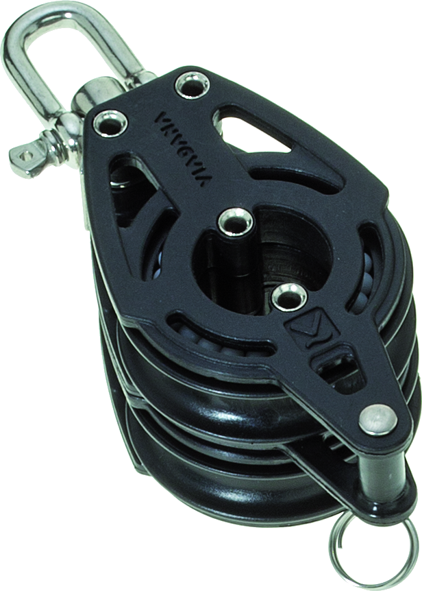 Viadana 2-schijfs blok 12 mm met hondsvot. Geschikt voor lijnen tot 12 mm met een totaal belasting van 1080 daN.