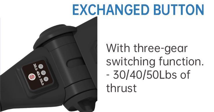 Met één druk op de knop past u de stuwkracht aan uw wensen aan. Gaat u voor een langere tocht? Selecteer dan een lagere krachtstand. Wilt u sneller vooruit? Dan schakelt u eenvoudig over naar de volledige 55 Lbs, vergelijkbaar met een 1,5 pk benzinemotor.