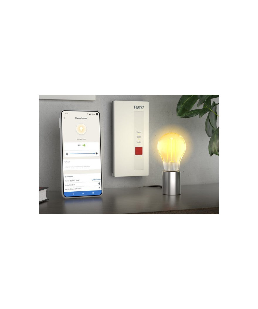 De FRITZ!Smart Gateway is Zigbee 3.0-compatibel en de ideale uitbreiding op je FRITZ!Box. Integreer LED-lampen in je FRITZ! slimme woning, regel de lichtsfeer in met verschillende Zigbee-lampen en combineer ze met de uitgebreide Smart Home-functies van FRITZ!. Daarnaast verdubbelt de FRITZ!Smart Gateway het aantal maximaal mogelijke DECT Smart Home-apparaten in je netwerk en maakt hij snel en eenvoudig verbinding met je FRITZ!Box.