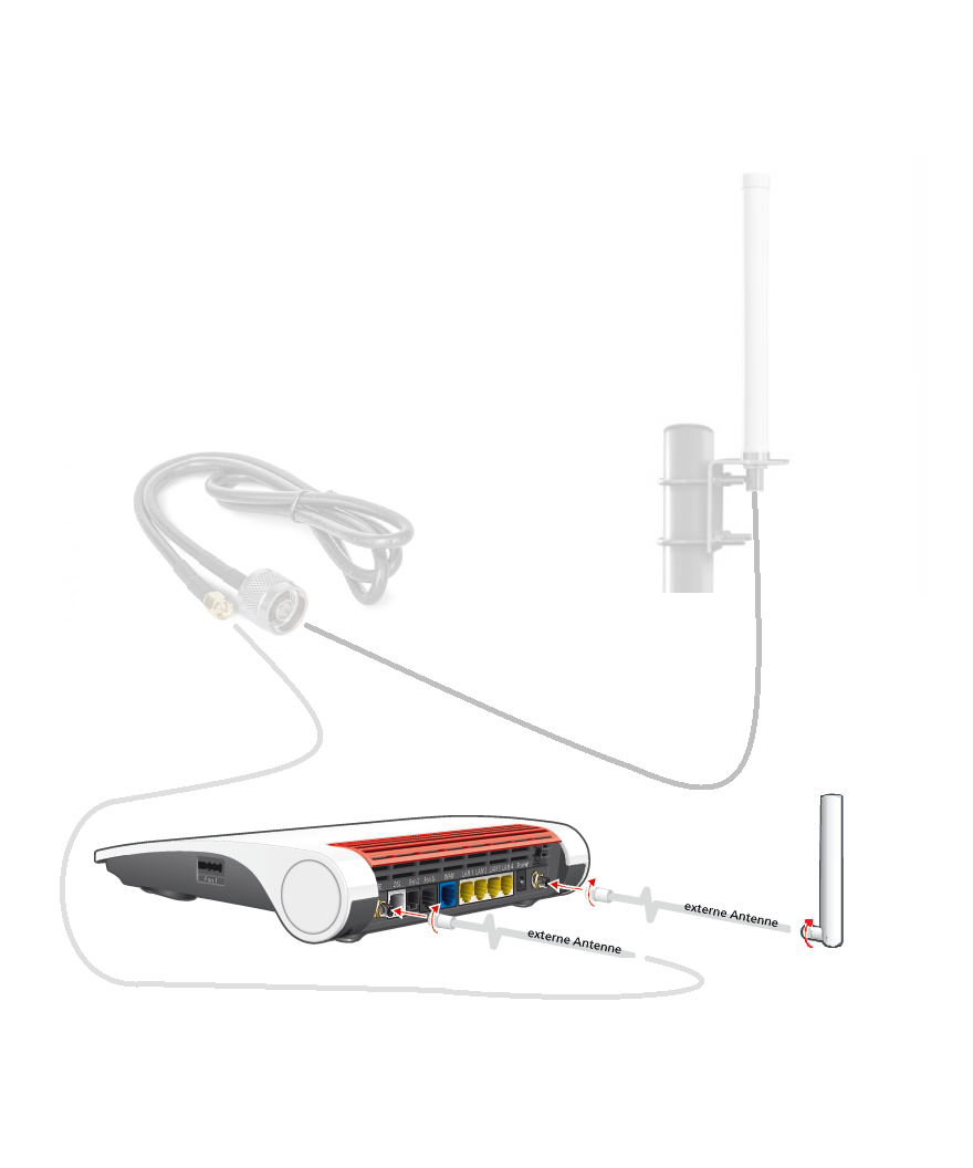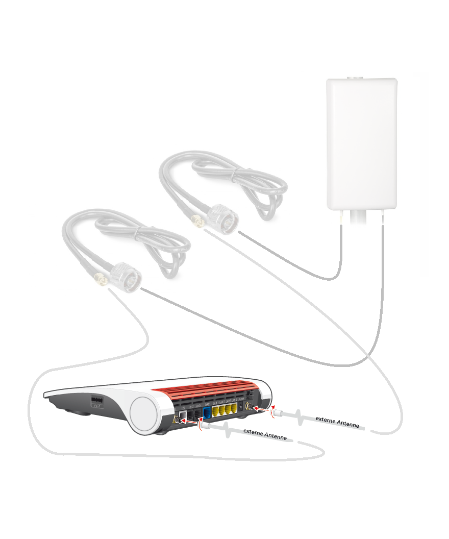 2 SMA-aansluitingen voor het aanschroeven van antennes voor het mobiele netwerk
