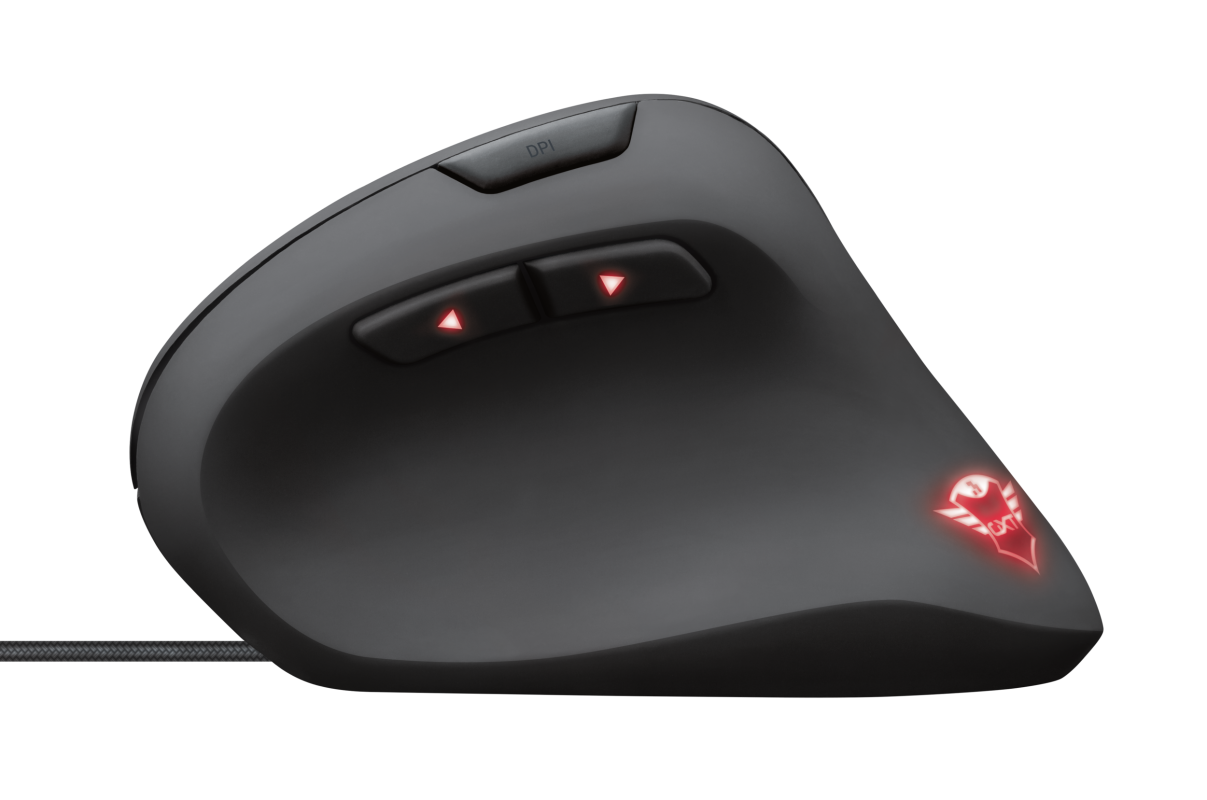 Verticale gamingmuis met ergonomisch ontwerp om belasting van arm en pols te verminderen
