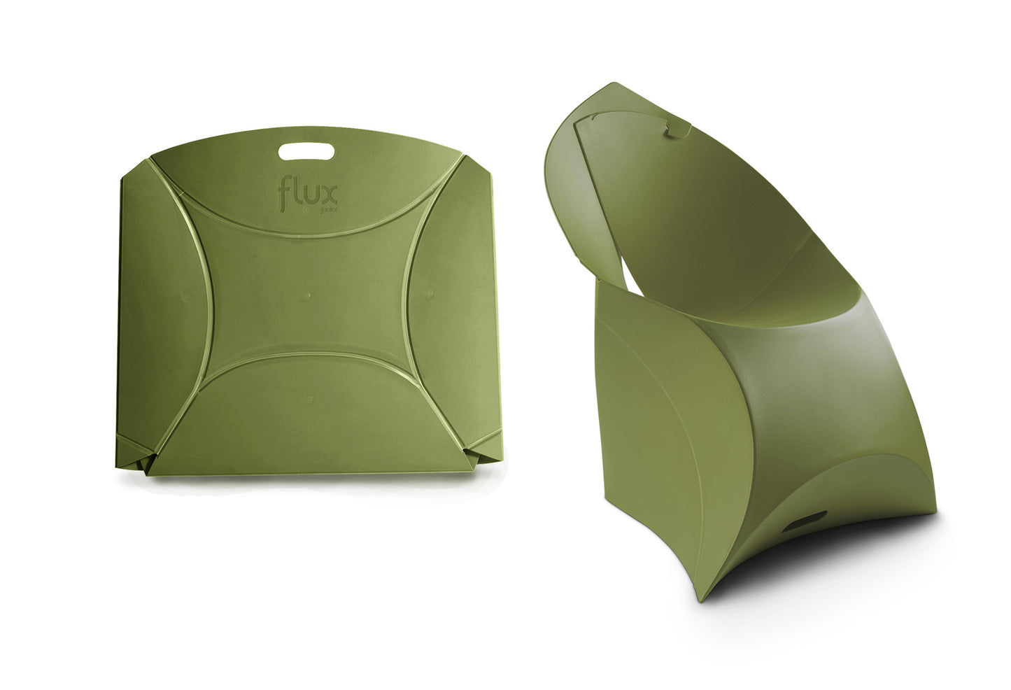 De Flux Chair Junior ziet er opgevouwen uit als een enveloppe. Tijdens het uitvouwen veranderd de Flux Cheir Junior (zonder gebruik te maken van gereedschap) in een junior design stoel. De Flux Chair Junior is gemaakt van uit één kunstig gesneden stuk duurzaam polypropyleen.