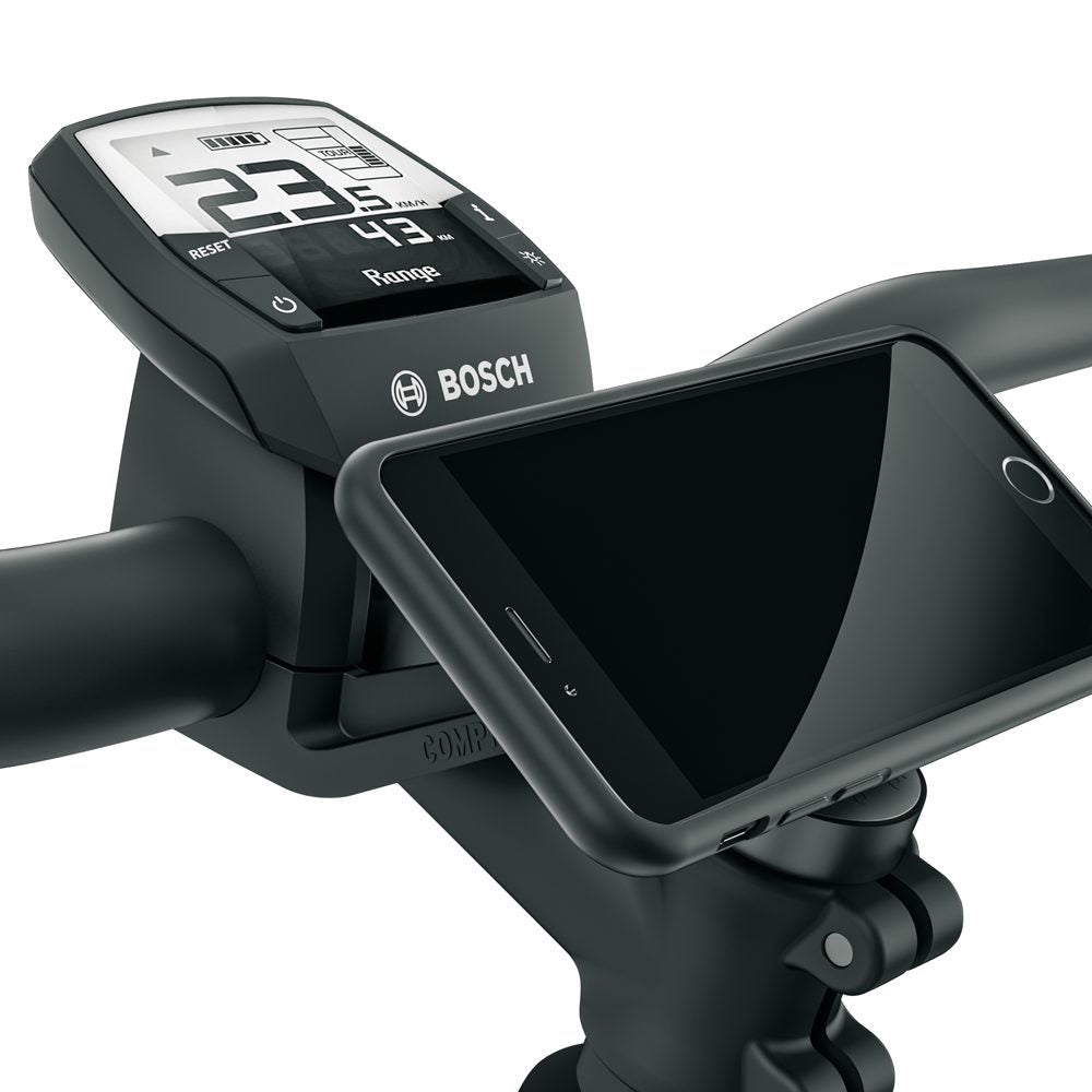 Het COMPIT+ systeem bestaat uit een smartphonehouder en powerbank. Elk mobiel apparaat met draadloosladen-functie, kan verbinden met de COM/CHARGER en onderweg geladen worden. In één draai laat de smartphone zich horizontaal of verticaal plaatsen via de oversized bajonethouder. De houder van de mobiele telefoon laat zich moeiteloos op verschillende stuurgeometrieën monteren.