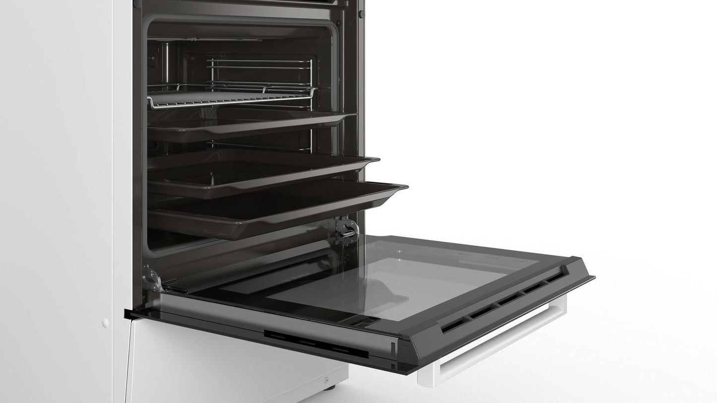 Deze Bosch Serie2 fornuis is voorzien van een inductie kookplaat met 4 zones en een bakoven met maar liefst 7 verwarmingssystemen. Perfecte ovenresultaten tot op 3 niveaus met 3D hetelucht De oven is voorzien van de 3D hetelucht-technologie. Deze technologie zorgt ervoor dat de oven tot op 3 verschillende niveaus tegelijk de juiste temperatuur heeft dankzij de verdeling van de hetelucht. Je eten wordt niet langer beïnvloed door de positie in de oven. Naast de 3D hetelucht functie beschikt de oven over een variable grootvlakgrill, Infra-circulatiegrill, onderwarmte, Pizzastand, Milde hetelucht en Boven- en onderwarmte. Koken met power Met de powerboost functie creeer je nog meer kracht om bijvoorbeeld heerlijk te kunnen roerbakken. Daarnaast beschikt het inductiefornuis over een QuickStart en een ReStart functie, timer met uitschakelfunctie en een restwarmte indicatie.