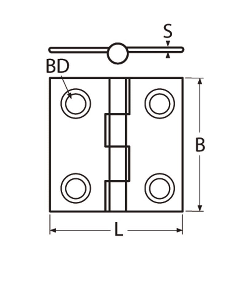 Marinetech Scharnier 38x38 mm afmetingen 38x38x4mm
