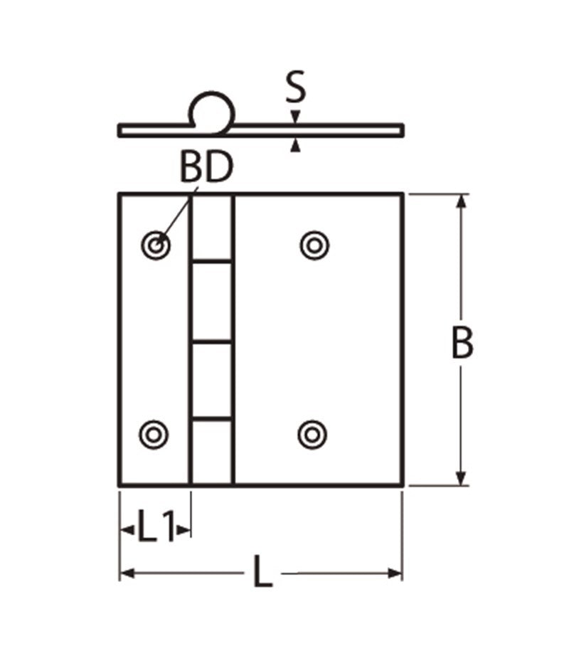 Marinetech Scharnier gegoten afmetingen l x b x dikte: 52x61x4mm