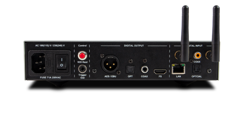 * AES/EBU-uitvoer: PCM tot 768 KHz/32 bit en DSD tot DoP256