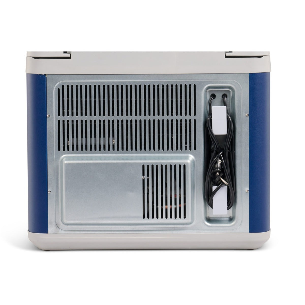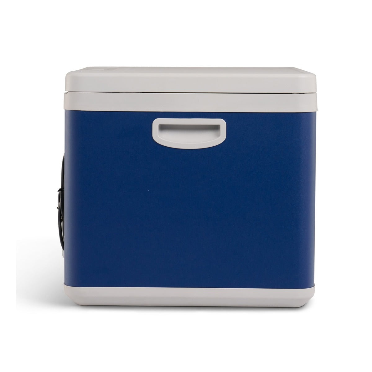Dit model is een hybride elektrische koelbox, compatibel met 12 V en 230 V stroombronnen, waardoor hij zowel in de auto als op het huishoudelijke elektriciteitsnet gebruikt kan worden. Dit maakt het mogelijk om in diverse situaties te koelen zonder uitsluitend afhankelijk te zijn van ijs of externe batterijen. De afwerking in een elegante blauwe kleur combineert stijl en functionaliteit, ideaal voor outdoor activiteiten, reizen, kamperen of voor wie bederfelijke producten onderweg wil bewaren.