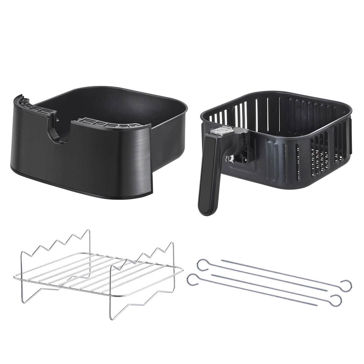 Hetelucht friteuse * Vermogen: 1700 Watt * 5 liter * Capaciteit 1.5 kg * 8 kookprogramma´s * koele wand * uitneembare binnenpan * Vaatwasbestendige onderdelen * Display * Timer * thermostaat * tot 200 graden * Inclusief grillrek * 4 spiezen * afm: (b x h x d): 32.3- 31- 31 cm ( 3/24 ) *