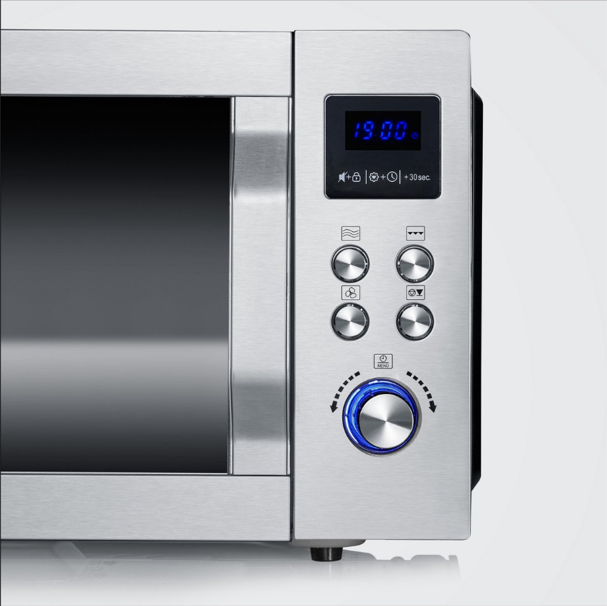 Innovatieve glasbodemtechnologie - verwarmen, koken en bakken zonder draaiplateau! Vierkante braadpannen en grote borden zijn geen probleem voor de MW 7758 dankzij het tot 80% grotere bruikbare oppervlak. Dankzij de innovatieve keramische bodemtechnologie met magnetronreflector heeft deze magnetron helemaal geen conventioneel draaiplateau nodig en garandeert perfecte resultaten. Dankzij de geïntegreerde grillfunctie en de ultrahete luchtfunctie met maximaal 230°C kunt u gemakkelijk bakken of diverse andere gerechten bereiden. Het aparte rek maakt zelfs koken op twee niveaus mogelijk, zodat twee gerechten tegelijk kunnen worden bereid. De vlakke keramische bodem garandeert een absoluut moeiteloze reiniging en kan eenvoudig met een vochtige doek worden schoongeveegd. De bediening is eenvoudig: dankzij het LEDTouch-display en het "Easy-Select"-concept zijn alle functies snel toegankelijk. De toetstonen kunnen naar wens worden in- of uitgeschakeld. 8 automatische programma's, 10 vermogensniveaus en ontdooien op gewicht of tijd maken het totaalplaatje compleet. Goed om te weten: Drie favoriete gerechten kunnen worden geprogrammeerd en te allen tijde met één druk op de knop worden opgeroepen.