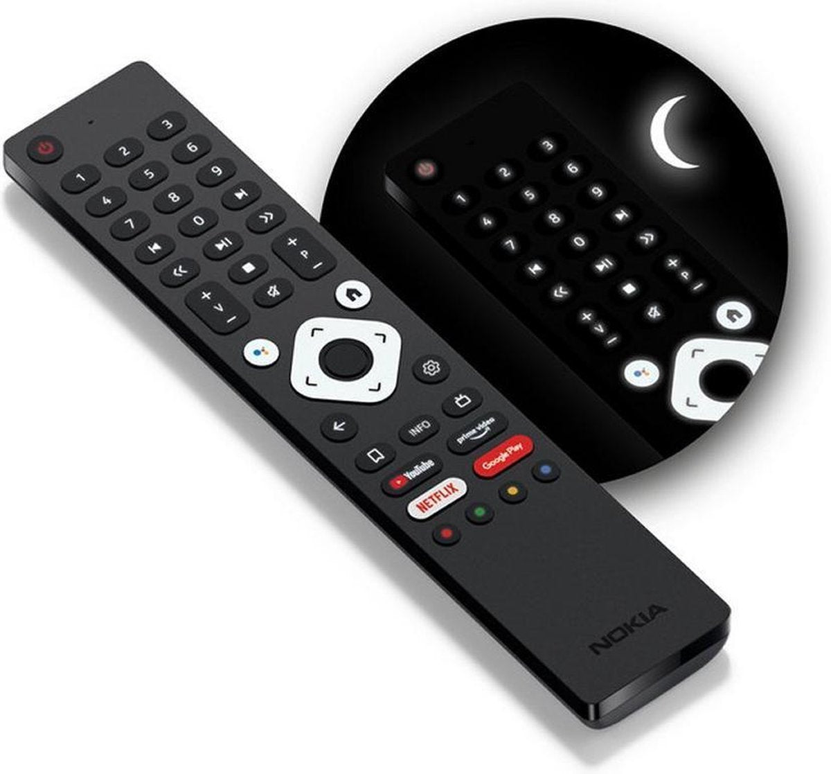 * Ergonomische Bluetooth afstandsbediening met verlichte toetsen en spraakbediening