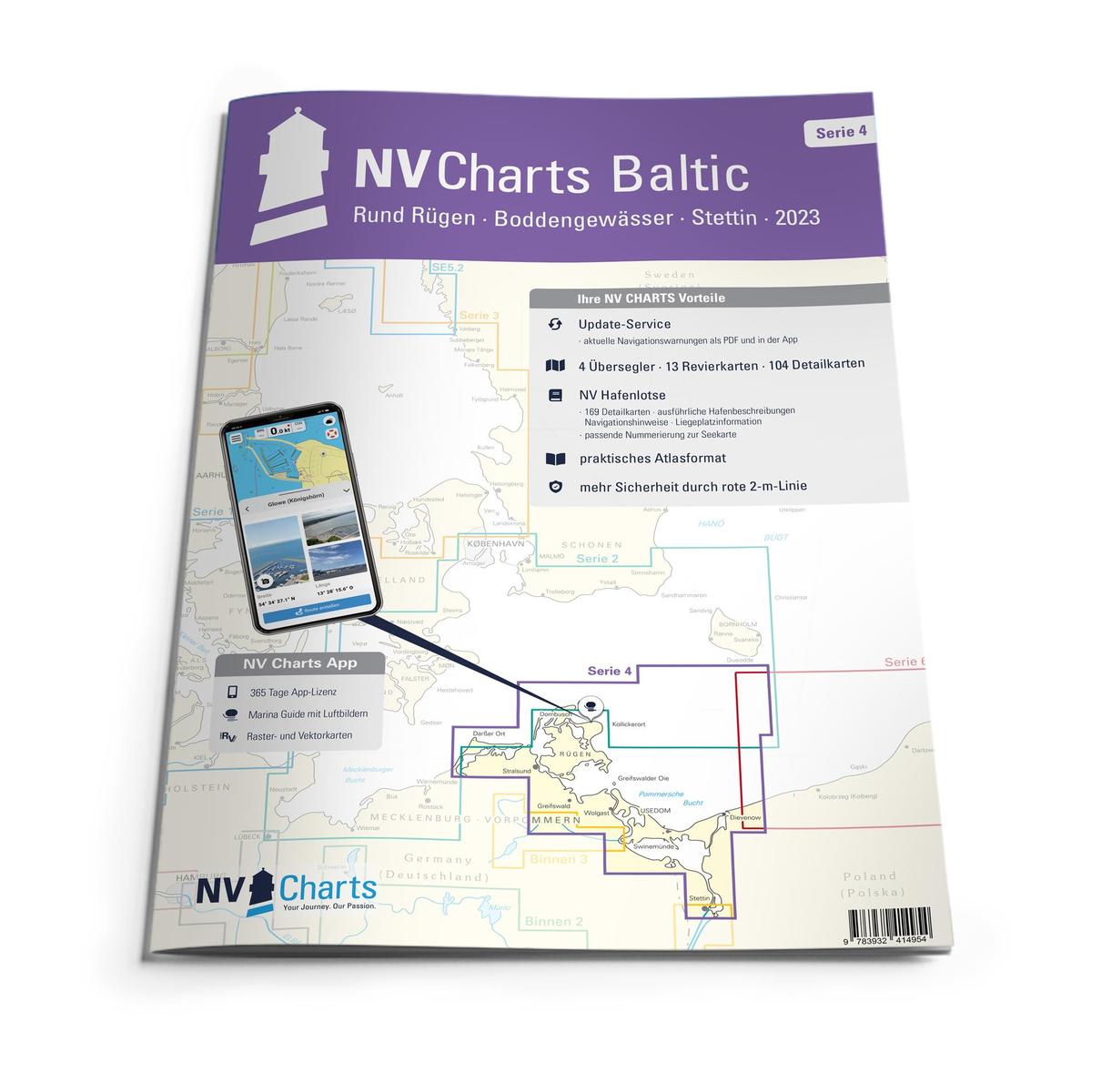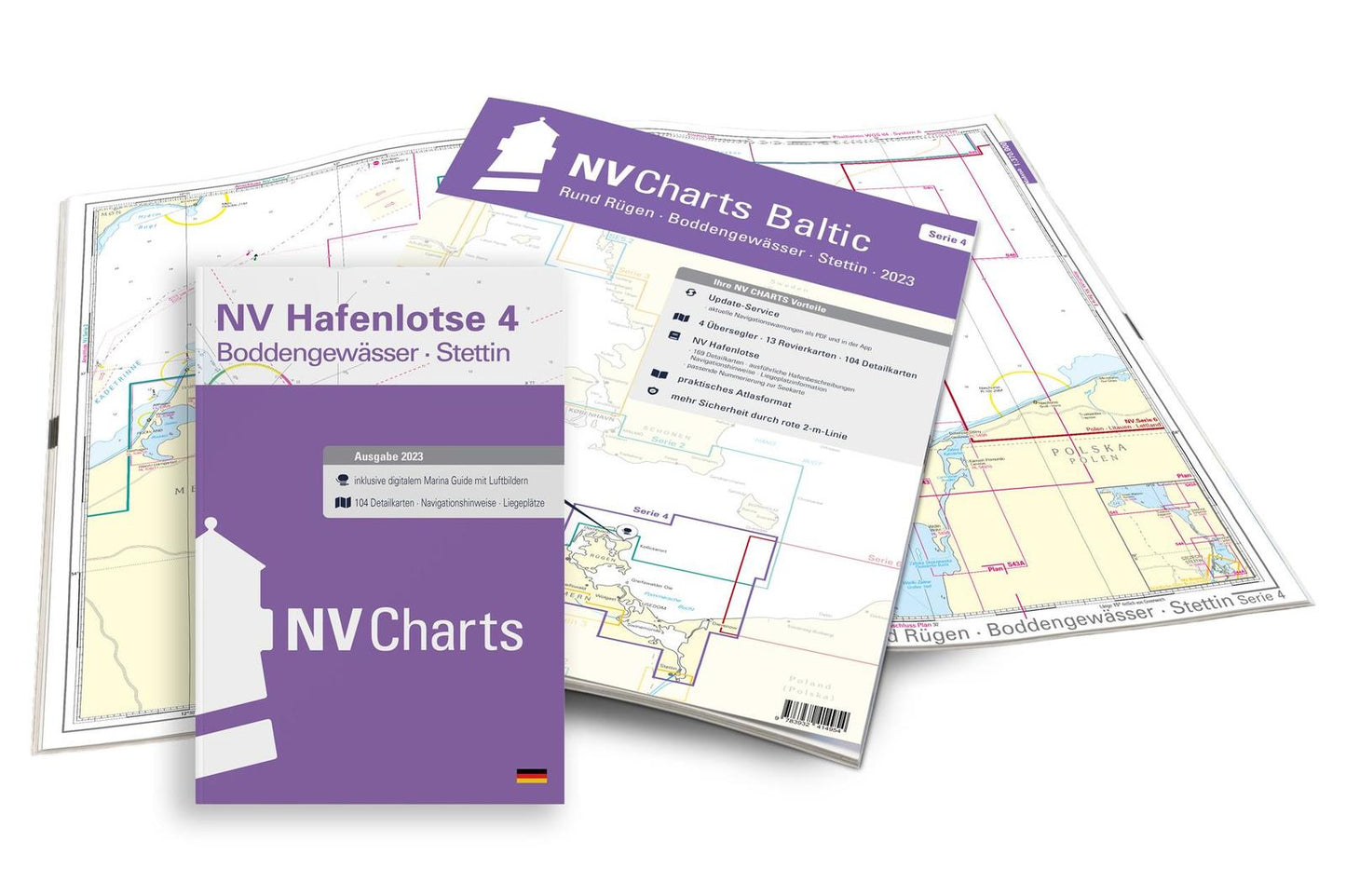 NV Kaarten voor de Oostzee - De handige pleziervaartkaarten zijn een set kaarten speciaal ontworpen voor de pleziervaart. De kaarten voor het zeegebied rond Rügen - Boddenwateren - Szczecin omvatten zeekaarten in verschillende schalen alsmede alle havenplannen en details voor aanvaarten en doorvaarten in de wateren. Bovendien zijn doorgangshoogten voor bruggen hoogspanningsleidingen enz. opgenomen evenals alle nautische en navigatienoodzakelijke informatie. Door de overzichtelijke structuur kan de recreatieschipper snel toegangen havens en ankerplaatsen vinden en wordt hij gewezen op navigatief belangrijke details die ook in de nv-kaarten app staan. De serie kaarten overtuigt door zijn optimale schalen en uitgebalanceerde bladgedeelten.