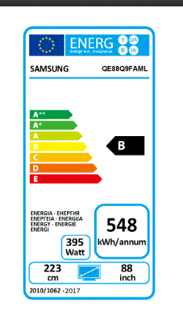 Beelddiagonaal 223 cm * 88 inch * HDR * resolutie ultra HD 4K (3840x2160) * QLED * LED TV * vlak * 100 Hertz * 3400 pqi * Smart TV * WiFi ingebouwd * Apps * Tizen * twin tuner * CI+ gecertificeerd * DVB-C * DVB-S * DVB-T * PIP * vermogen: l/r speakers 60 Watt * 5 HDMI- 3 USB- ethernet- optisch- aansluiting(en) * stroomverbruik 395 Watt * jaarlijks energieverbruik 548 kWh * Energieklasse B * Kleur: zwart * Vesa compatible * Gewicht 72.7 kg * afm: (b x h x d): 1198- 113.1- 3.04 cm