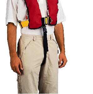 Een kruisband voor een automatisch reddingsvest is sterk aanbevolen, de kruisband voorkomt dat het reddingsvest omhoog kruipt in het water, en maakt het zwemmen dus gemakkelijker. Van 25-mm breed polyester band met kunstof gesp.