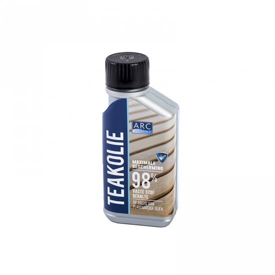 Voor het onderhoud van onze teakproducten adviseren wij het gebruik van ARC Teak Oil Plus. Zorg voordat u de behandeling uitvoert dat het teak oppervlak schoon en droog is. Gebruik per keer een kleine hoeveelheid olie. De behandeling kan onbeperkt herhaald worden. Hoewel het product samengesteld is voor teak, geeft deze olie ook op andere hardhoutsoorten een uitstekend resultaat. Ideaal voor uw meubilair, zowel binnen als buiten.