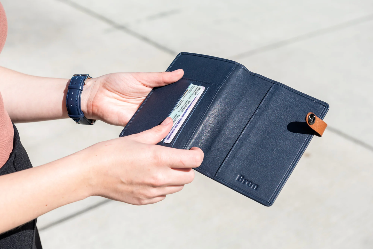 Deze lederen paspoorthouder mag niet ontbreken op je volgende reis! Ideaal met extra vakjes voor creditkaarten, de Bron drukknoop als fijn detail om de houder te sluiten. Afgewerkt met de bruine band, welke uiteraard ook in leder is. Laat die reizen maar komen! Een leuke combinatie met het bagagelabel!