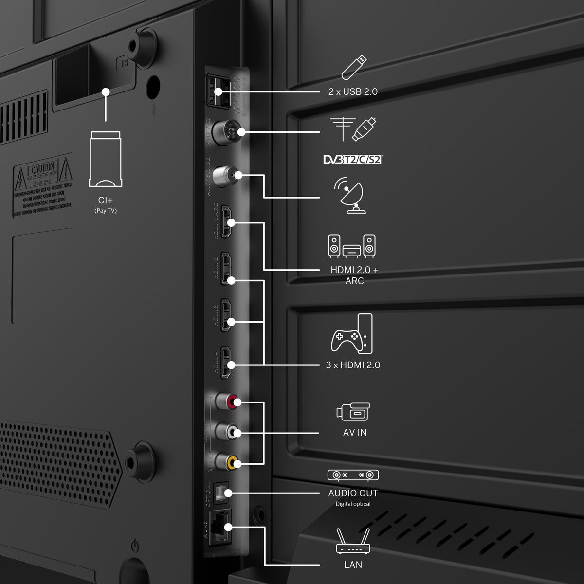 * 4 HDMI- HDMI ARC- 2 USB- ethernet- optisch- aansluiting(en)