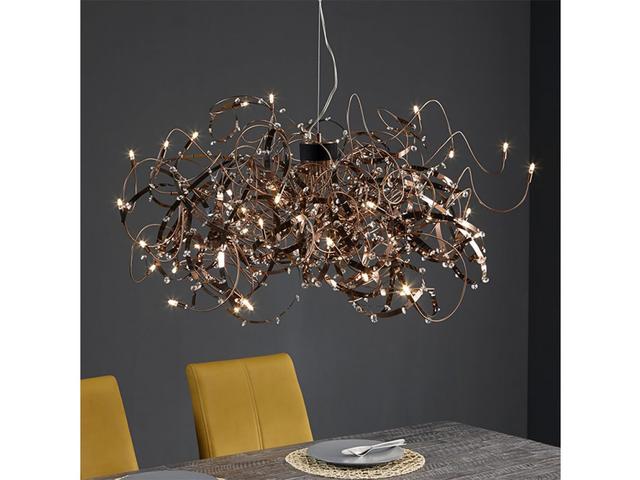 Deze stijlvolle en sierlijke lamp past daarom uitstekend boven een royale eetkamertafel. Wilt u dit model voor een kleine tot middelgrote eetkamertafel gebruiken? Dan kunt u kiezen voor hanglamp Nido met 18 lampjes. Hanglamp Nido is verkrijgbaar in koperkleur of zwart en is voorzien van een aantal kristallen.