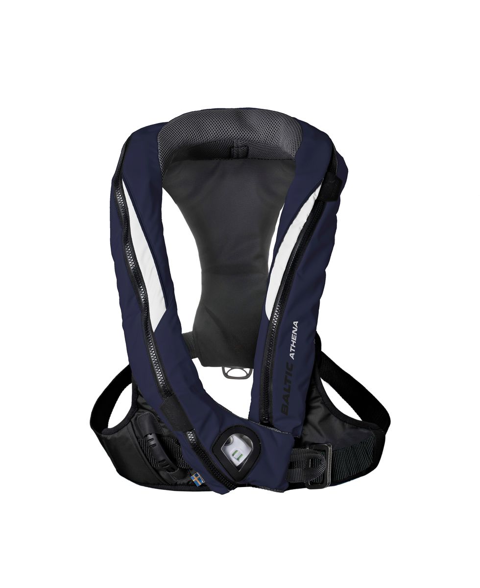 Het populaire reddingsvest Athena is nu ook verkrijgbaar met een geïntegreerd harnas. Lancering van het allereerste opblaasbare reddingsvest, ontwikkeld met focus op vrouwen. Om een ##betere pasvorm en een slanker vest te krijgen wordt het ventiel onder de buste geplaatst, in combinatie met goede verstelmogelijkheden zorgt dit voor een net en flexibel model ongeacht de lichaamsvorm. Het harnas van het vest heeft een geweven lus en sluit met zuurbestendige interlock-fittingen en een gewatteerd klittenband dat zorgt voor een zachte beschermlaag tussen het lichaam/de kleding en de fitting. Kijkvensters die via ventielen groene indicatoren aangeven dat het reddingsvest opgeladen en klaar voor gebruik is. Afneembare kruisband en fluitje. 165N draagvermogen en is geclassificeerd als reddingsvest. 100N draagvermogen en is geclassificeerd als reddingsvest. Een reddingsvest redt levens. Het is ontworpen om de gebruiker altijd in rugligging te draaien en de luchtwegen ruim boven het wateroppervlak vrij te houden, zelfs als de gebruiker bewusteloos is of niet kan zwemmen. Reddingsvesten zijn verkrijgbaar met een opblaasbare long of met stevig drijvend materiaal. Iedereen heeft gemeen dat ze in geactiveerde positie het grootste deel van het drijfvermogen aan de voorkant hebben en een stevige kraag die het hoofd ondersteunt en omhoog houdt. Een zwemvest is de voor de hand liggende keuze voor mensen die niet kunnen zwemmen. Reddingsvesten hebben altijd een draagkracht van minimaal 100N. De opblaasbare modellen zijn onderverdeeld in verschillende klassen, afhankelijk van de gebruiksomstandigheden. Een automatisch reddingsvest wordt opgeblazen wanneer de gebruiker in het water belandt, terwijl een handmatig reddingsvest door de gebruiker moet worden geactiveerd