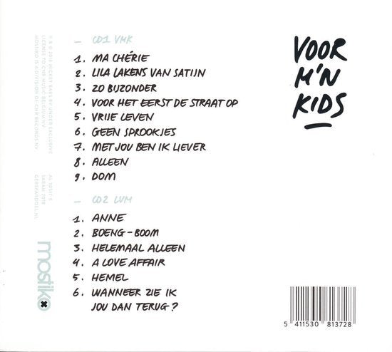 Na zijn niet-onopgemerkte deelname aan `Liefde Voor Muziek' is nu ook zijn derde album klaar. `Voor M'n Kids' is een dubbel-cd met daarop een heleboel nieuwe nummers én zijn populaire covers uit `Liefde Voor Muziek'. Het is het derde album van Gers Pardoel, na `Deze wereld is van jou' (2011) en `De Toekomst Is Van Ons' (2014). Gers schrijft al z'n teksten zelf en toont op het album een opvallend gevoelige kant van zichzelf. Zijn intieme teksten kregen een up-tempo beat, afgewisseld met ballads en af en toe zelfs een tikkeltje reggae. Het resultaat is een verrassend album met nummers die iedereen kan smaken en refreinen die vlotjes meezingen.