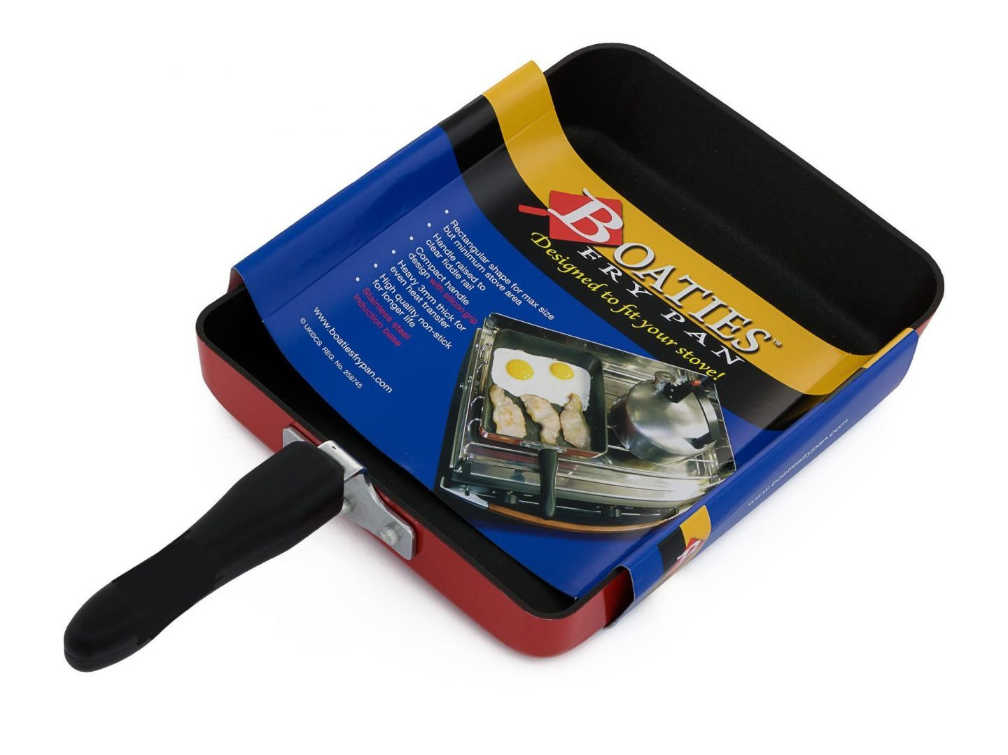 Boaties koekenpan om te bakken, braden, grillen, smoren en roosteren. Deze vierkante koekenpan is speciaal ontworpen voor recreatieve fornuizen in compacte ruimtes met weinig ruimte, zoals aan boord van een boot, camper of caravan. Dankzij de vierkante vorm van de pan benut je het maximale kookoppervlak.