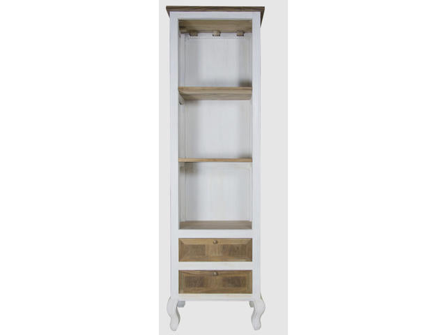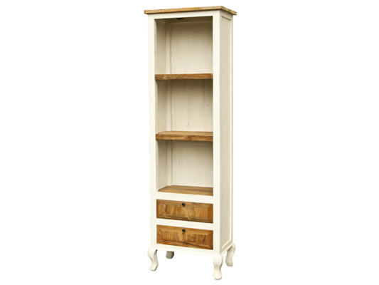 Deze boekenkast is voorzien van 3 open vakken en 2 lades.