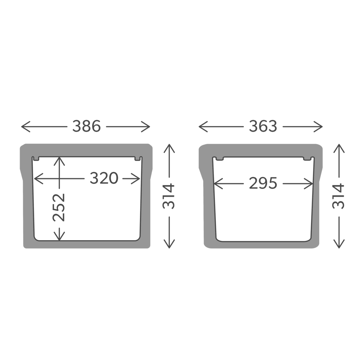 * Afmetingen productdiepte, [mm] 363
