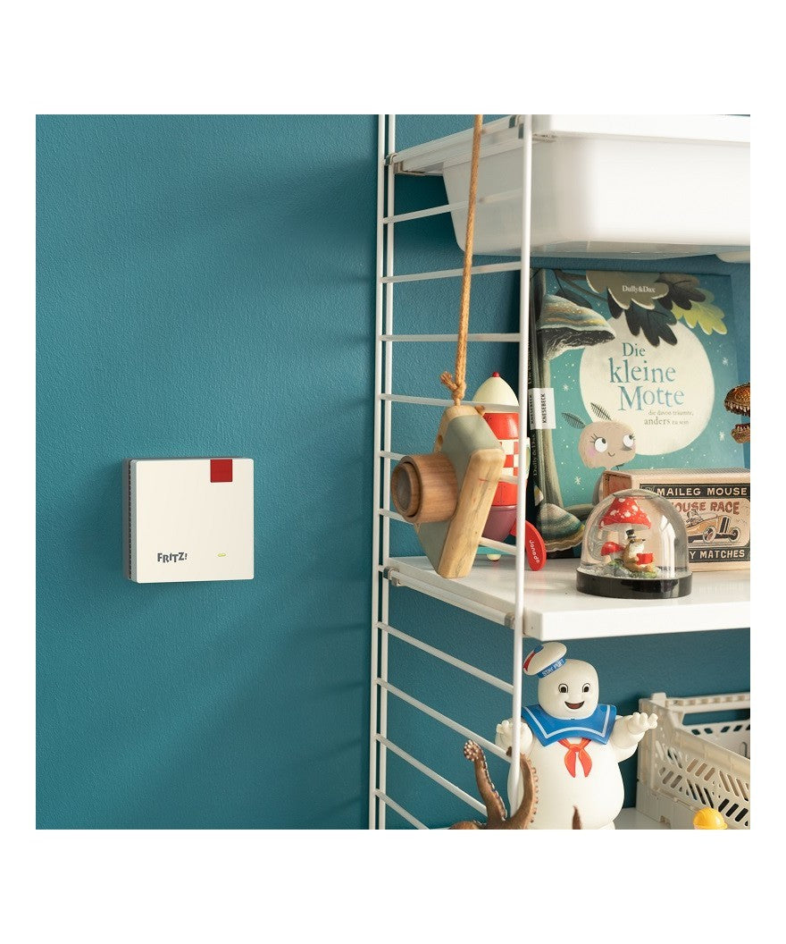 De FRITZ!Repeater 1200 AX biedt razendsnel WiFi 6 met snelheden tot 2400 Mbit/s op de 5 GHz frequentieband (2x2 met een bandbreedte van 160 MHz) en 600 Mbit/s op de 2,4 GHz frequentieband (2x2 met een bandbreedte van 160 MHz), gelijktijdig. Dat betekent surfplezier zonder laadbalkjes, snelle downloads en HD-video's zonder uitval, of je nu binnen of buiten bent. Via de Gigabit LAN-aansluiting kunnen ook apparaten zonder eigen WiFi-functionaliteit in het thuisnetwerk worden geïntegreerd. Klein en compact past deze repeater op elke contactdoos!