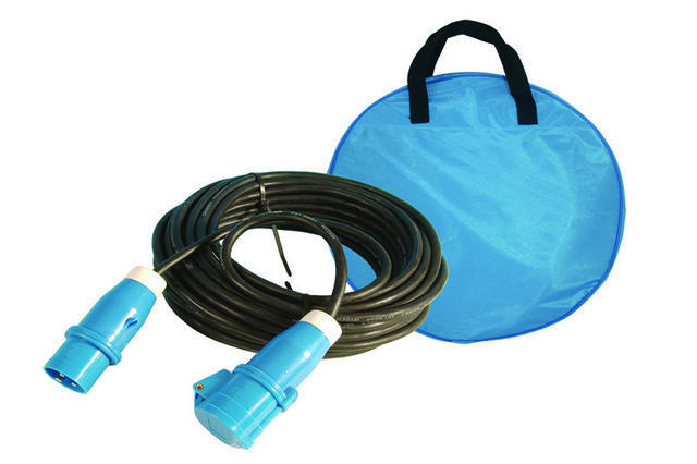 Verlengkabel van 20 meter met CEE/CEE connectoren, geleverd met tas.