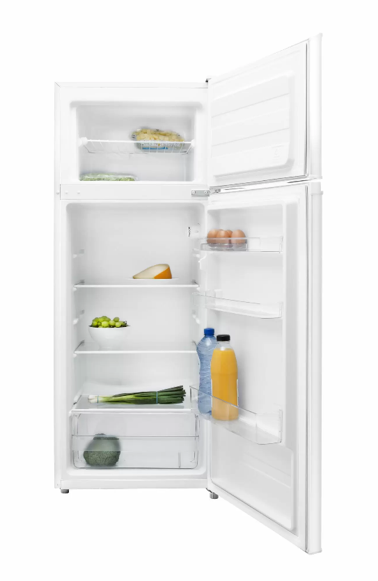 De Inventum vrijstaande koel- vriescombinatie KV1430 heeft een totale netto inhoud van 204 liter. Het is een zuinige koel- vriescombinatie met energieklasse F. Het 4 sterren vriesgedeelte met een netto inhoud van 41 liter, heeft een invriesvermogen van 2 kg/24u. De koel- vriescombinatie heeft drie draagplateaus en onderin een transparante groentelade. Met twee deurvakken, een flessenvak en een eierrekje berg je al je etenswaren netjes op. Deze onderdelen zijn eenvoudig te verwijderen, zodat je deze goed kunt schoonmaken.