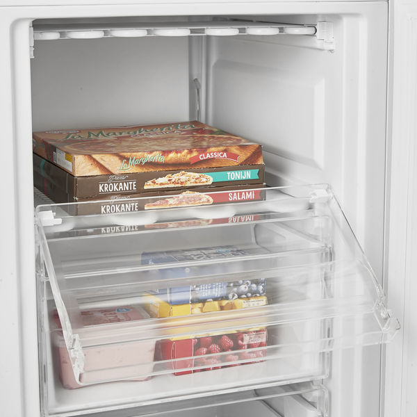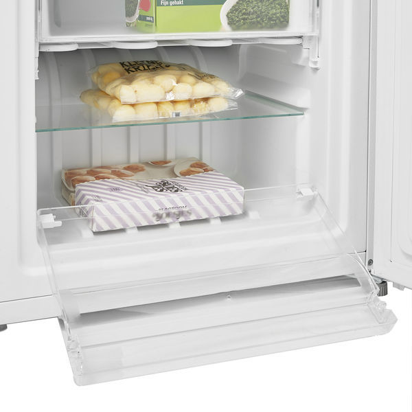 De Inventum vrijstaande vriezer VR1420 heeft een netto inhoud van 153 liter. Het is een hoge en zuinige vriezer met energieklasse F. Deze 4 sterren vriezer heeft een invriesvermogen van 10 kg/24u. In de drie transparante lades en 2 vriesvakken met kleppen berg je al je etenswaren netjes op. De vriezer is makkelijk te plaatsen. De deur kan zowel links als rechts bevestigd worden.