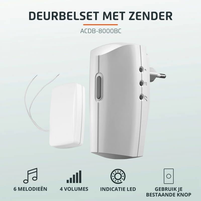 Haal meer uit je deurbel! Combineer je bestaande beldrukker met het gemak van een draadloze deurbel van KlikAanKlikUit. Koppel de meegeleverde zender aan je bestaande beldrukker, plaats de draadloze deurbel op elke gewenste plek in huis en kies uit een van de zes melodieën.