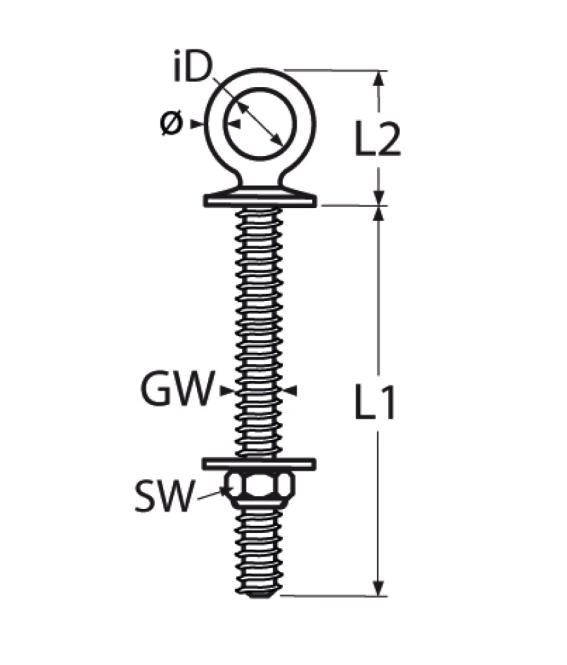 Marinetech Oogbout M8x80 met kraag en metrische draad