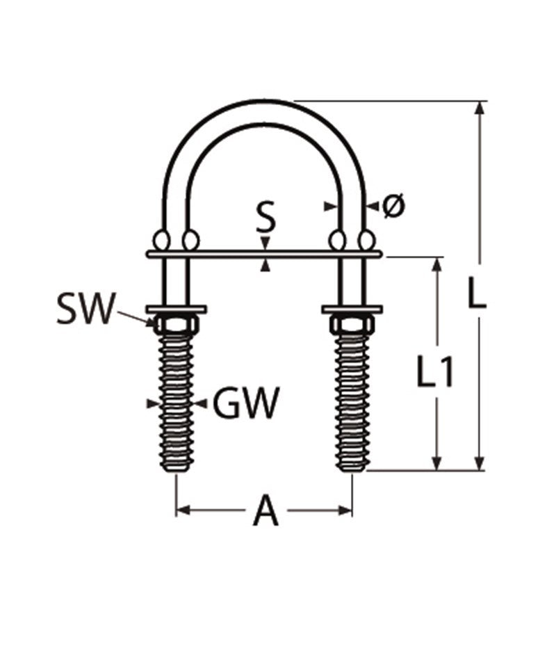 Marinetech U-Beugel M6x90 met contraplaat en twee sluitringen: