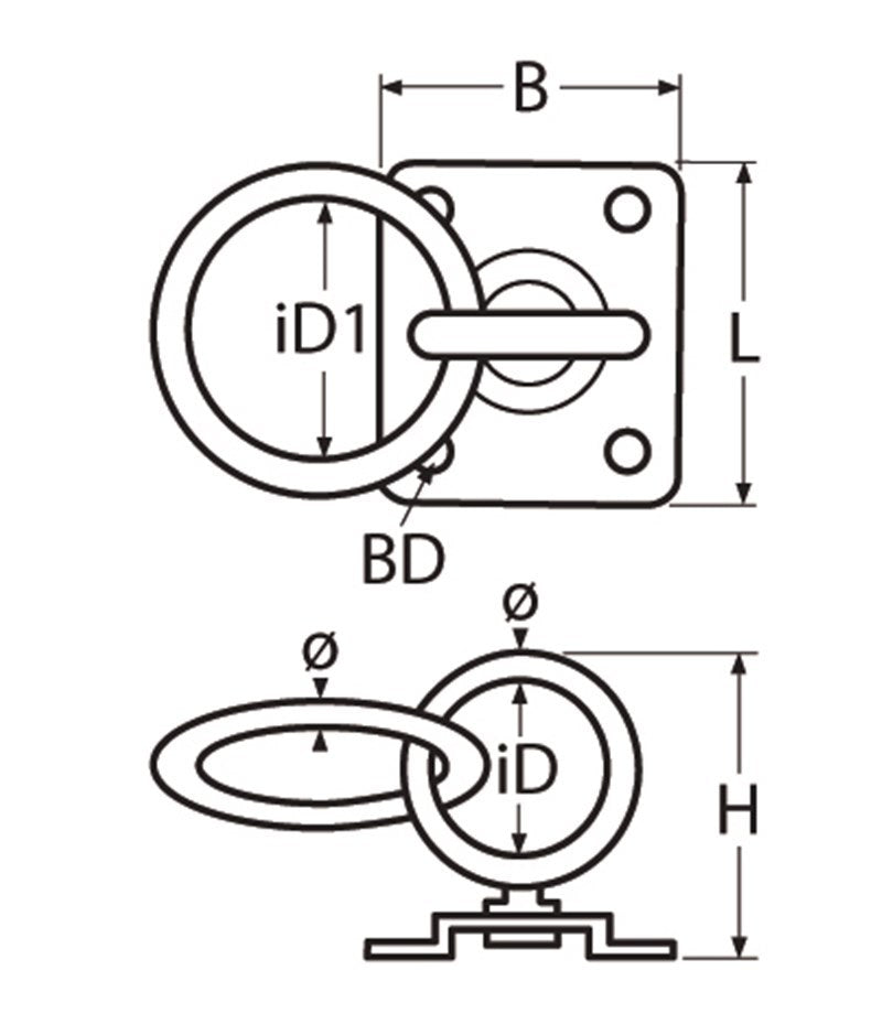Marinetech Warteloog met Ring 5mm en rechthoekige grondplaat 30x35 mm.