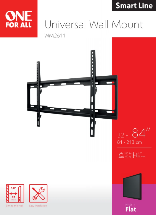 Hang uw TV vlak tegen de muur om een moderne uitstraling in uw woonkamer te creëren; kies voor een vlakke muurbevestiging. Deze muurbeugel met een laag profiel maakt een vaste wand-tv-afstand van slechts 25 mm mogelijk. Op deze manier is er nog voldoende ruimte voor de ventilatie van uw TV.