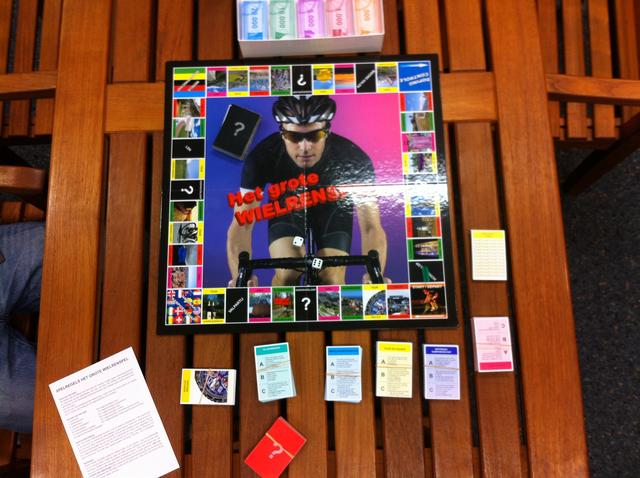 * Inhoud doos: Bordspel, 6 wielrennertjes, 521 kaartjes, 5 soorten wielergeld, 2 dobbelstenen
