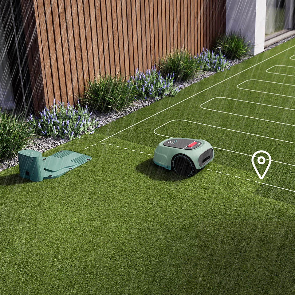 Uw tuin wordt met behulp van gps in kaart gebracht, zodat de robotgrasmaaier automatisch terug naar het basisstation gaat om op te laden en vervolgens naar het laatste gemaaide punt om daar opnieuw met maaien te starten.
