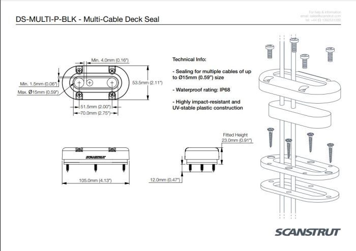 De DS-MULTI-P-BLK is gemaakt van slagvast kunststof, is UV-stabiel en slijtvast en biedt een 100% waterdichte afsluiting, ongeacht het weer.
