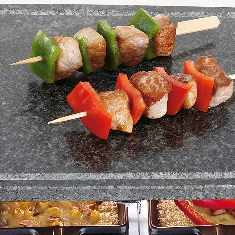 De raclette-grill staat garant voor feestplezier voor maximaal 8 personen. De grote natuurlijke grillsteen met warmteopslag zorgt voor het beste grillresultaat binnen en buiten.