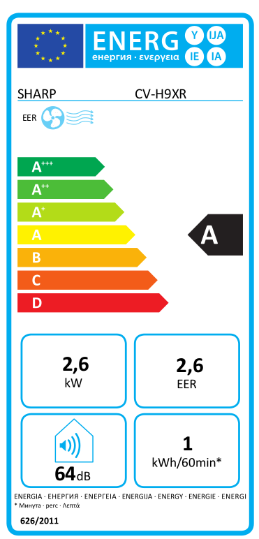 Sharp CVH9XR mobiele airco met ontvochtiger en ventilator functie productkenmerken: