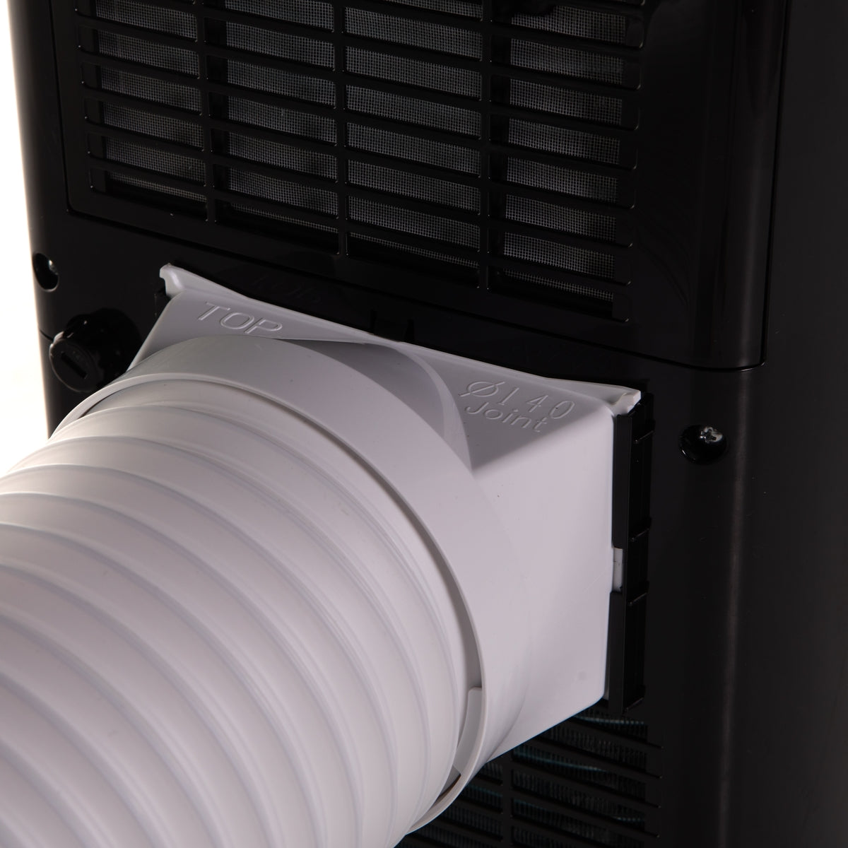 Voor installatie dient een meegeleverde afvoerslang naar buiten toe de warme lucht weg te kunnen blazen. Daarmee wordt de luchtvochtigheid in de ruimte verminderd en de temperatuur gekoeld.