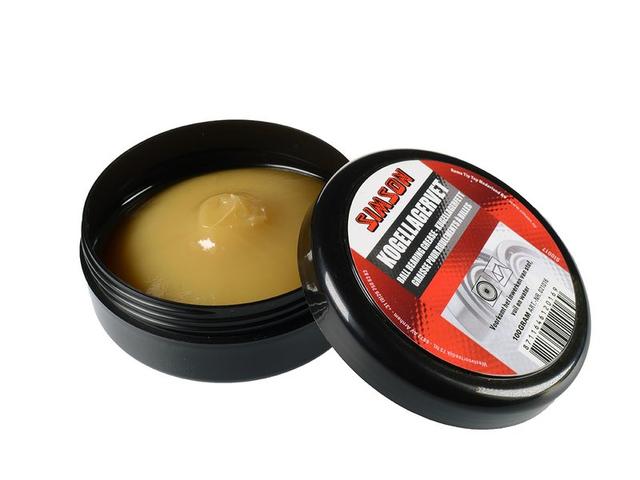 Simson Kogellagervet voor het smeren van de kogellagers van bijvoorbeeld fietsen, bromfietsen, en motoren. Beschermt de kogellagers tegen corrosie en voorkomt het inwerken van stof, vuil en water. Simson kogellagervet hecht zich sterk aan metaal en verdringt water uitstekend. Lager goed reinigen, ontvetten en drogen. Vervolgens minimaal een derde van de vrije ruimte opvullen met kogellagervet. De Simson kogellagervet wordt geleverd in een 100 grams pot met draaidop.